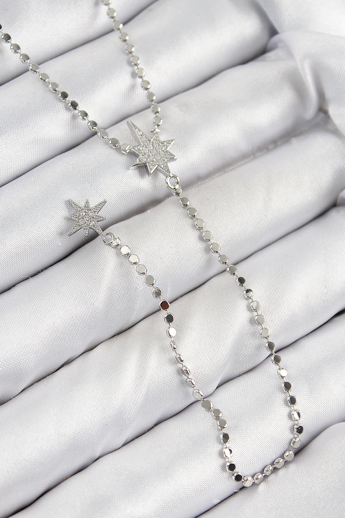 Pirinç Zirkon Taşlı Ezme Zincirli Kutup Yıldızı Model Gümüş Renk Y Kolye