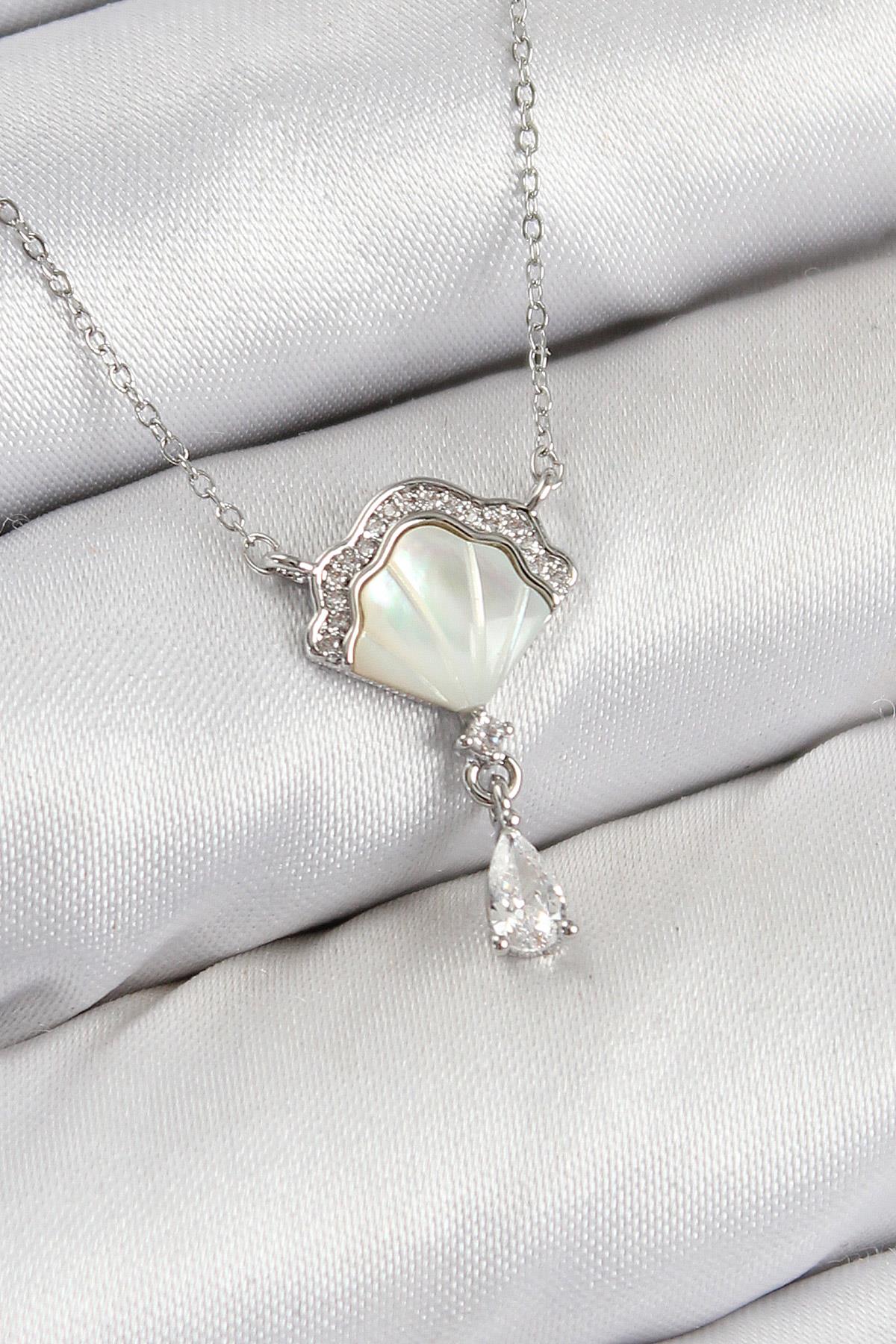 Pirinç Zirkon Taşlı İstiridye Model Gümüş Renk Kadın Kolye